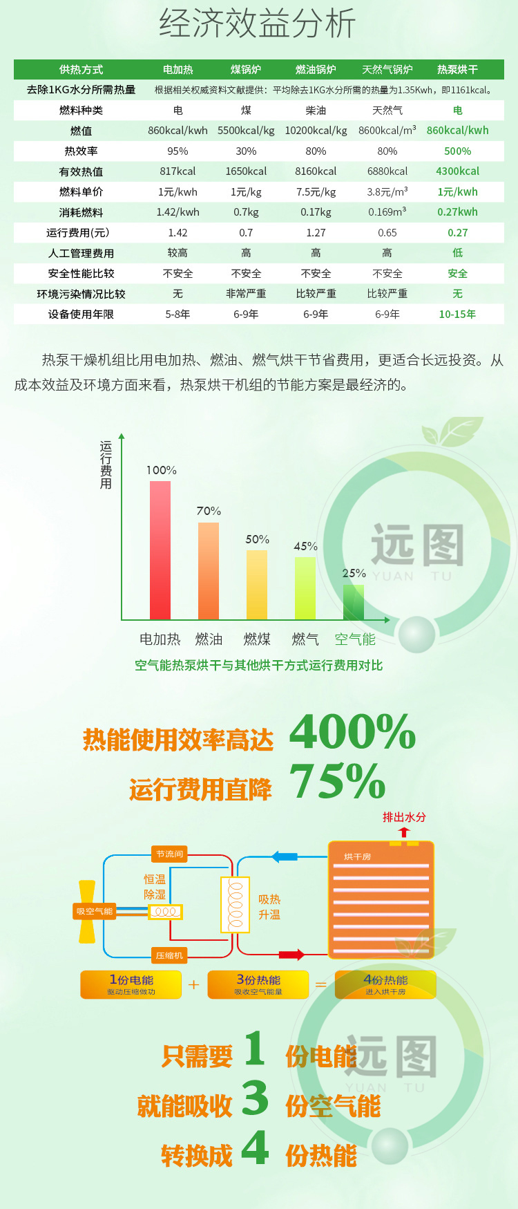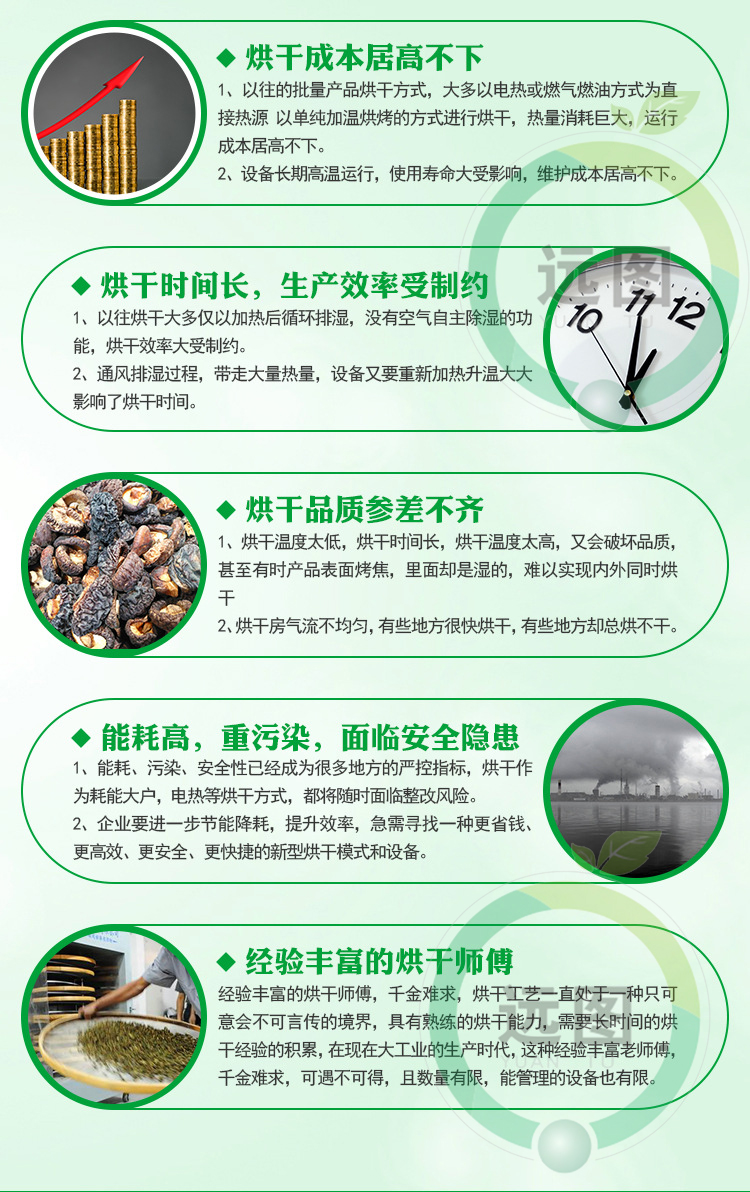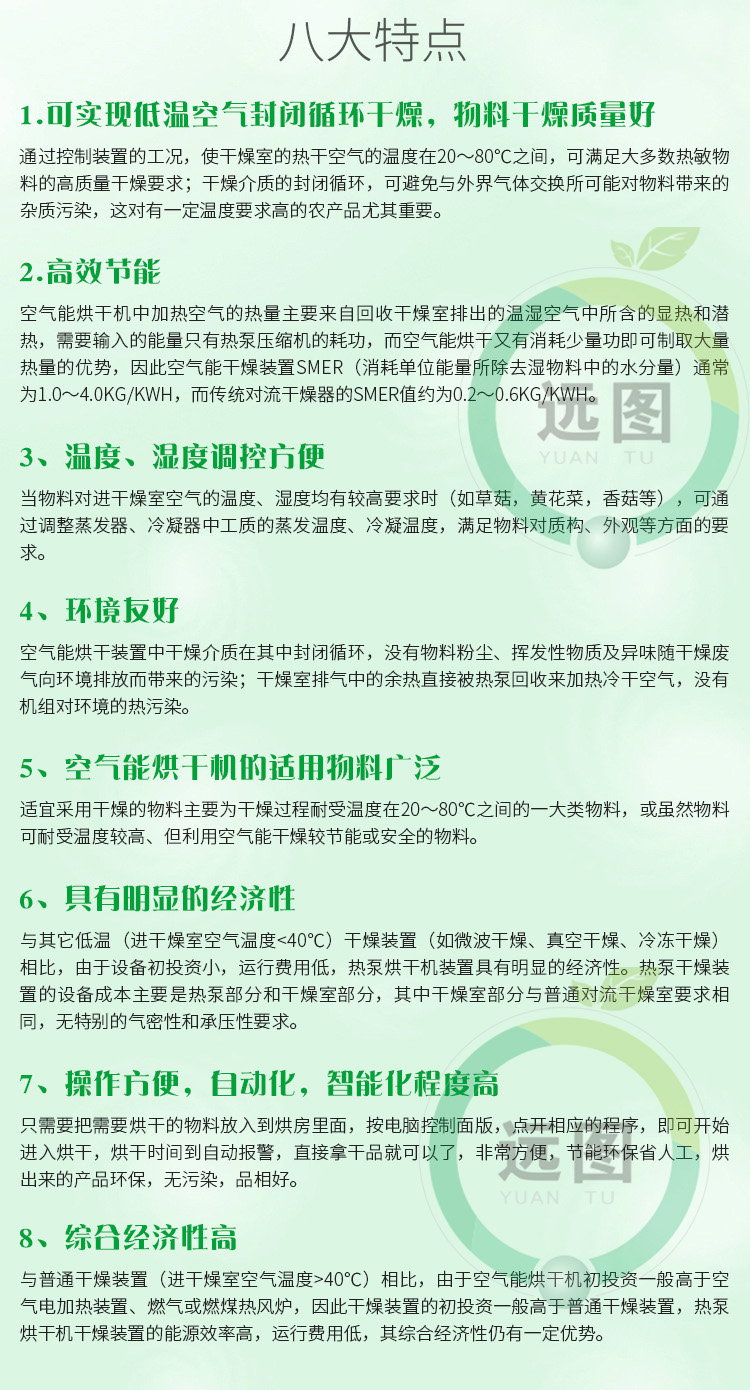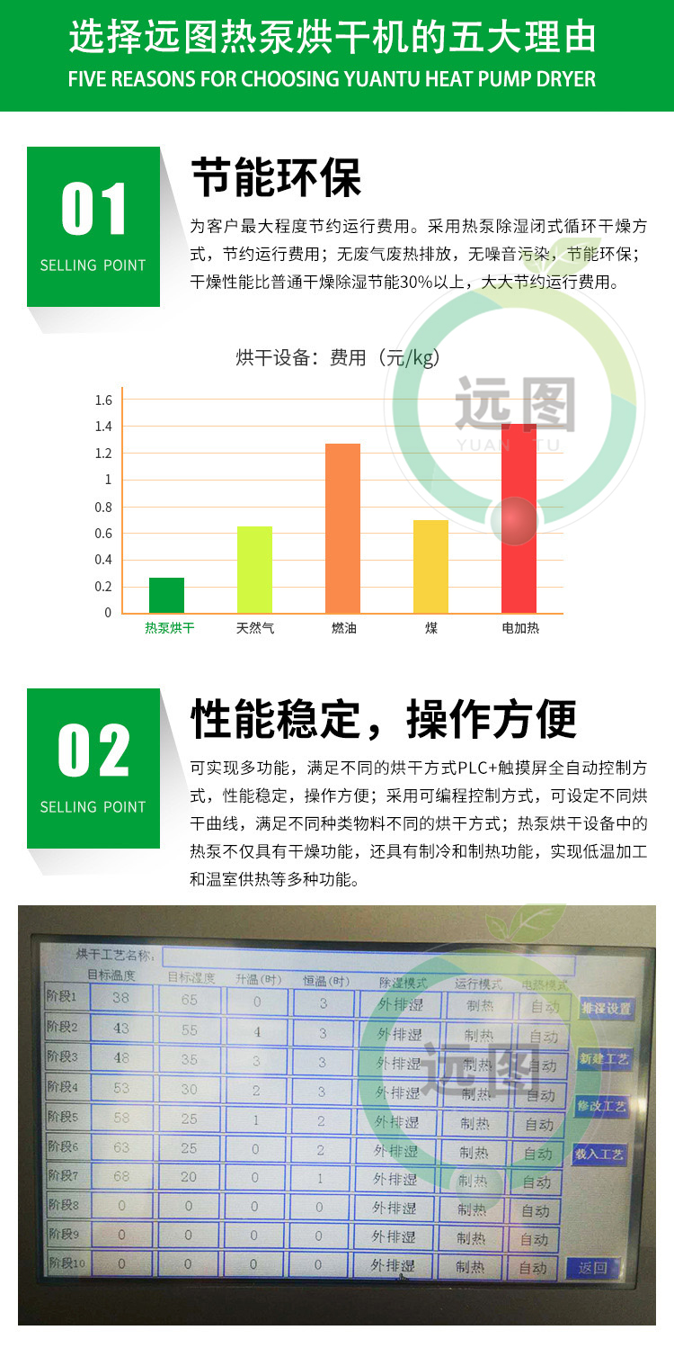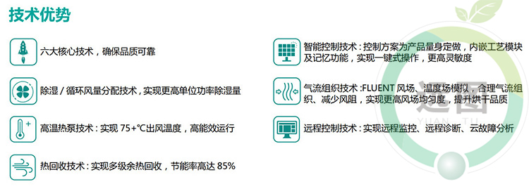 自動(dòng)紅薯烘干流水線由7大系統(tǒng)組成:輸送鏈條系統(tǒng)+烘干機(jī)組系統(tǒng)+自動(dòng)循環(huán)風(fēng)系統(tǒng)+自動(dòng)除濕系統(tǒng)+保溫烘干房系統(tǒng)+自動(dòng)上料系統(tǒng)+自動(dòng)下架系統(tǒng)等組成。紅薯烘干機(jī)流水線是一種高溫紅薯烘干機(jī)流水線,本機(jī)通過(guò)壓縮空氣進(jìn)行升溫(烘干房?jī)?nèi)可調(diào)溫度為:8℃-75℃,可調(diào)濕度:5%-95%),完全不用燒煤、不用燒柴、不要燒炭、不用鍋爐、不用蒸汽。紅薯烘干機(jī)流水線只需要少量的電能來(lái)驅(qū)動(dòng)壓縮機(jī)就可以獲得所需要的高溫?zé)崃,紅薯烘干機(jī)流水線安全衛(wèi)生、環(huán)保、無(wú)污染、無(wú)廢氣排放,運(yùn)行電費(fèi)超低,全自動(dòng)運(yùn)行工作時(shí)無(wú)需人員值守,是一種節(jié)能環(huán)保的烘干解決方案。