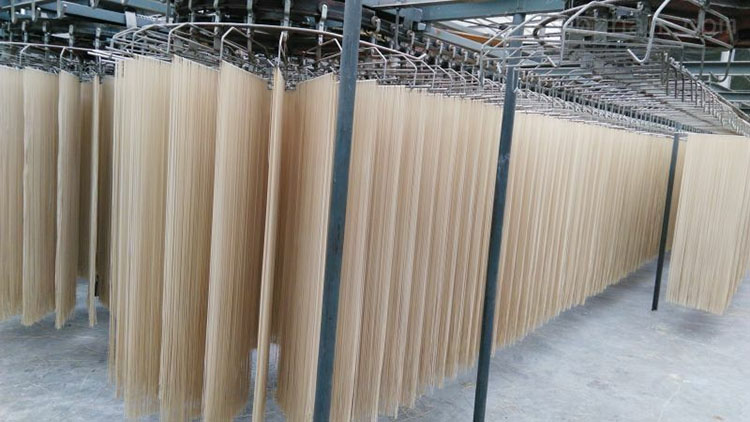 烘烤時(shí)間一般控制在8小時(shí)至12小時(shí)以上。上面的是移動(dòng)式的面條烘干工藝,對(duì)于產(chǎn)量較低的面條烘干項(xiàng)目,可使用間歇批次生產(chǎn)的固定烘干房,但是物料的烘干原則亦可大體參照上述的設(shè)定。